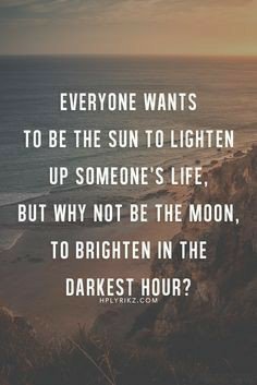 Everyone wants to be the sun to lighten up everyone’s life, but why not be the moon to lighten the darkest hour?