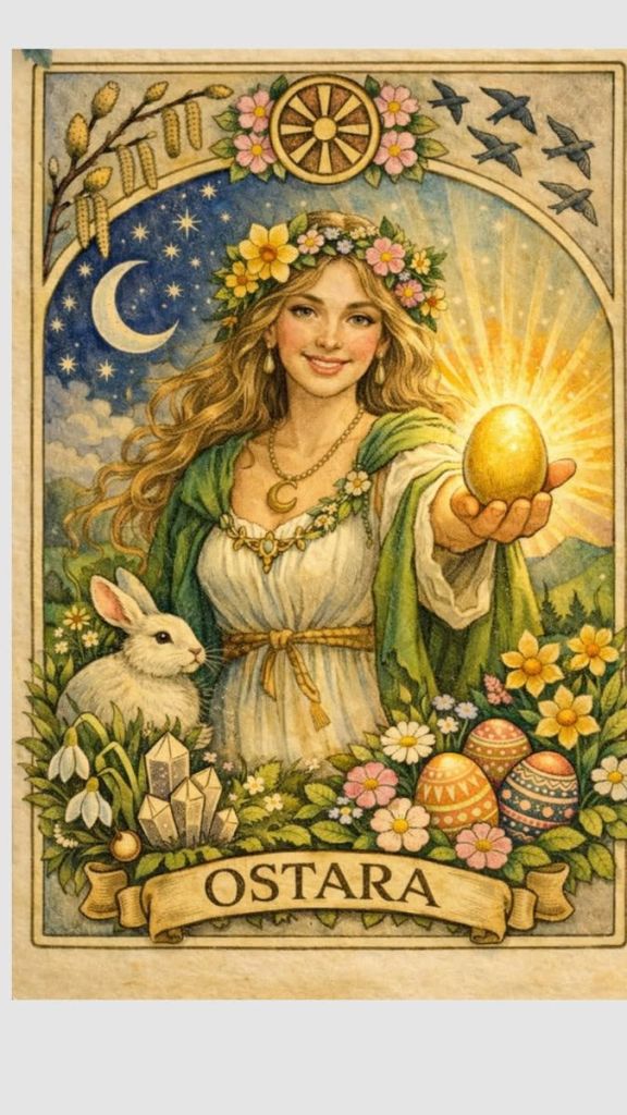 Ostara is the Spring Equinox festival on the Wheel of the Year, celebrated around Easter. It often coincides with the Vernal or Spring equinox but not always (as in this year) It marks the shift from winter’s stillness to spring’s renewal, fertility, and returning light.