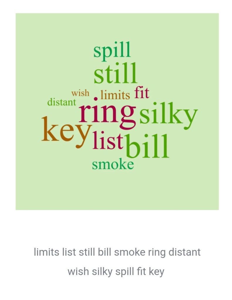 limits, list, still, bill, smoke, ring, distant, wish, silky, spill(ed), fit, key.